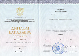 В 2010 г. – ВГПУ по специальности «практическая психология».